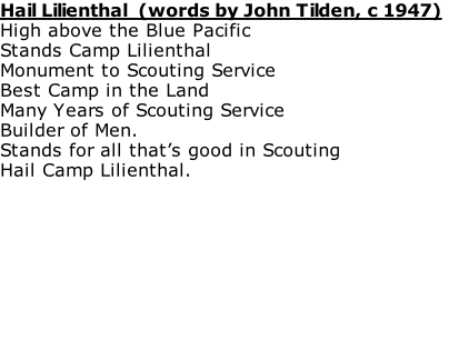 San Francisco Council Patch, (c 1950) San Francisco Bay Area Council History B S A B S A Los Mochos Symbol, Oakland Area Council (1945 - Present) Camp Loomer Symbol, Oakland Area Council (1957 - 1973) TC San Francisco Training Camp symbol, San Francisco Council (1917 - 1924) Camp Moore symbol, San Francisco Council (1938 - 1951) Camp Lilienthal Symbol (Fairfax location), San Francisco Council (1928 - 1973) Camp Royaneh symbol, San Francisco Council (1925 - Present) Camp Lilienthal (Stern Grove location) Symbol, San Francisco Council (1919 - 1925) Boy Scouts of America, San Francisco Bay Area Council • 1001 Davis Street, San Leandro, CA 94577-1514, (510) 577-9000  |  Contact Webmaster Camp Lilienthal (Marin County) Historical Documents 1929 - 1973 Camp Lilienthal patch (c 1955), Image courtesy of the Adam Lombard Collection Camp Staff / Rangers Patches / Memorabilia Boy Scouts of America, San Francisco Bay Area Council • 1001 Davis Street, San Leandro, CA 94577-1514, (510) 577-9000 Camp Lilienthal drawings,1951